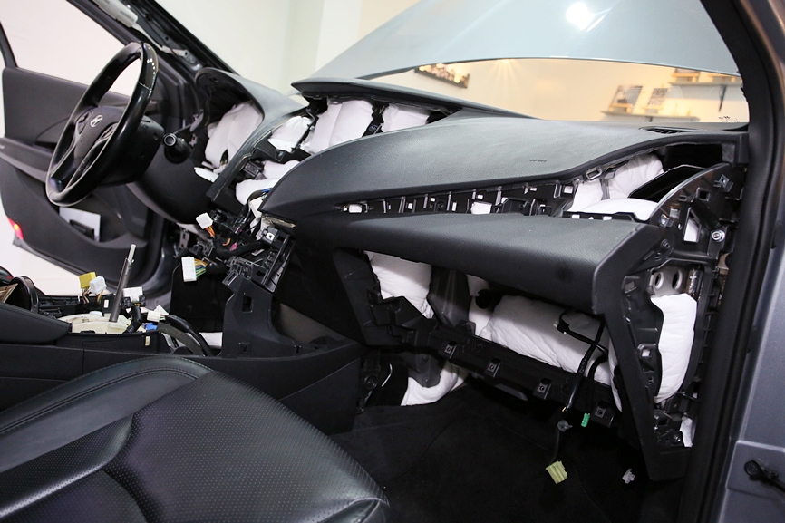 오디오, 공조, 내비게이션 관련 파츠들을 모두 탈착해야 합니다.