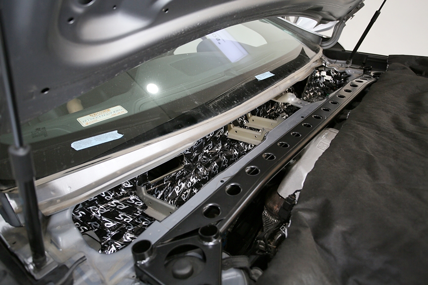 보닛 커버 안쪽으로 시공한 신슐레이트가 노이즈를 차단하는데.